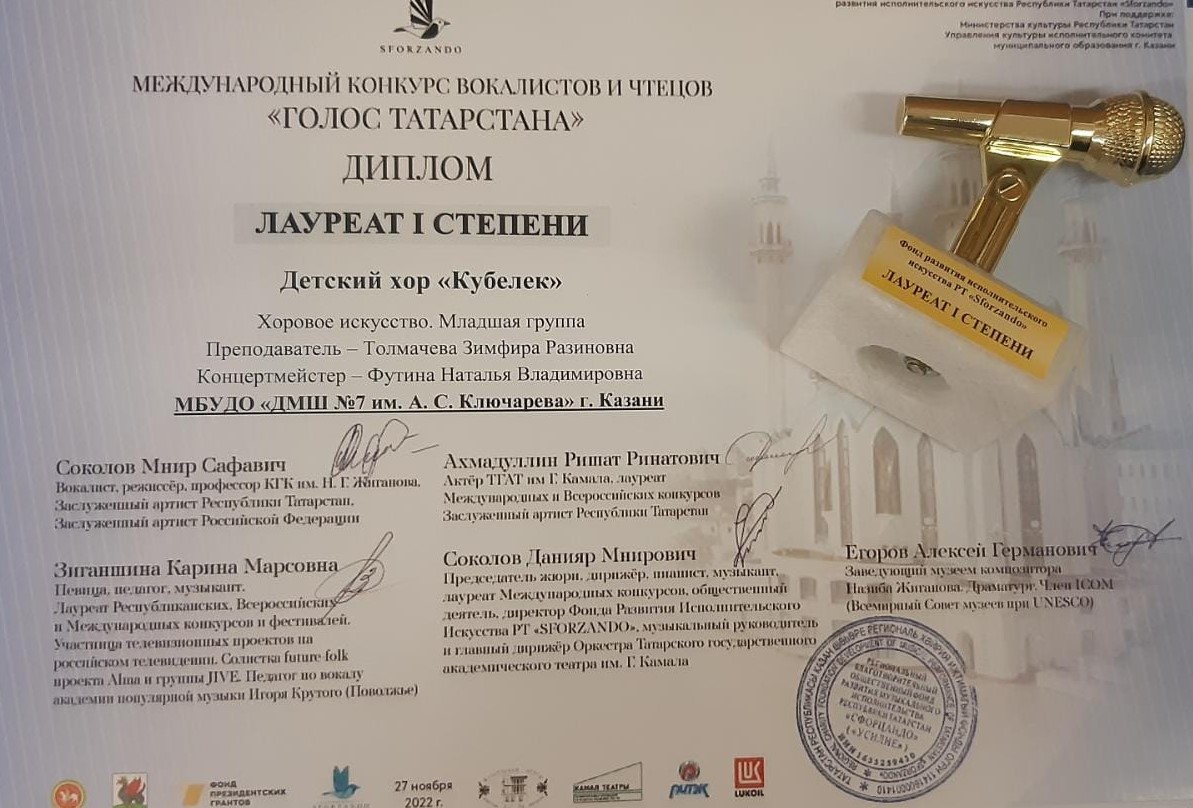 1. Хор "Кубелек",солисты Майоров Назар и Хусаенова Лейсан-лауреаты I степени;