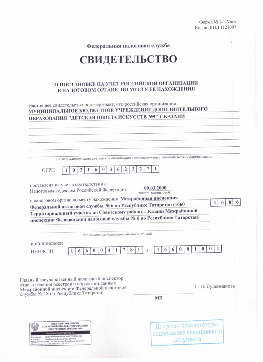 Короткое название: МБУДО "Детская школа искусств №9" г.Казани