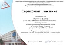 По итогам соревнования Ульяна получила сертификат участника, подтверждающий ее знания и интерес к точным наукам.