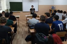 28 май көнне актлар залында "Выбор" ҮППМ психологы Берсенев Дмитрий Викторович 1 нче курс студентлары белән экстремаль шартларда кеше үз-үзен тотышы вариантларын аңлатуга юнәлдерелгән интерактив әңгәмә уздырды.