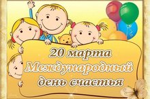 20 марта во всем мире отмечают Международный день счастья (Отмечается по решению Генеральной Ассамблеи ООН (резолюция от 12 марта 2012 года)). Его цель признать важность счастья в жизни каждого человека и поддержать идею о том, что стремление к счастью является общим чувством для всех людей нашей планеты.