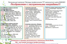 Поздравляем победителей и призёров Регионального чемпионата "Молодые профессионалы" РТ чемпионатного цикла 2020/2021 гг. с заслуженными наградами.