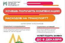 Республиканский конкурс «Транспортный грант» в этом году возвращается с большими и приятными изменениями: финансирование возросло с 30 до 60 млн рублей. Для получения компенсации на транспортные расходы необходимо подать заявление ответственному в своей образовательной организации - Матвеева Елена Юрьевна (соц. педагог).