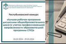 Республиканский конкурс "Лучшая рабочая программа дисциплины общеобразовательного цикла с учётом профессиональной направленности образовательной программы СПО)" 01.04.2024