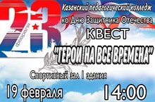 19 февраля в 14.00 ч. состоится Квест "Герои на все времена" для наших сильных защитников #kzn_pedcollege