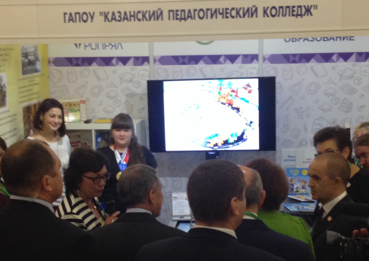 Перед официальным открытием Вербицкая в компании президента РТРустама Минниханова и главы минобрнауки РТ Энгеля Фаттахова прошли по выставке образовательных учреждений, в которой был представлен и Казанский педагогический колледж.