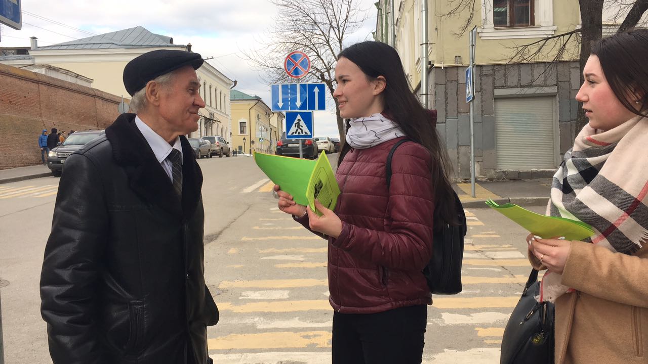 Опубликовано: 20.04.2017Студенты Казанского педагогического колледжа, члены волонтерского движения "Kind people" - Карина Иванова, Динара Насырова и Наиля Хананова провели акцию на улицах города " Их именами названы улицы.. "