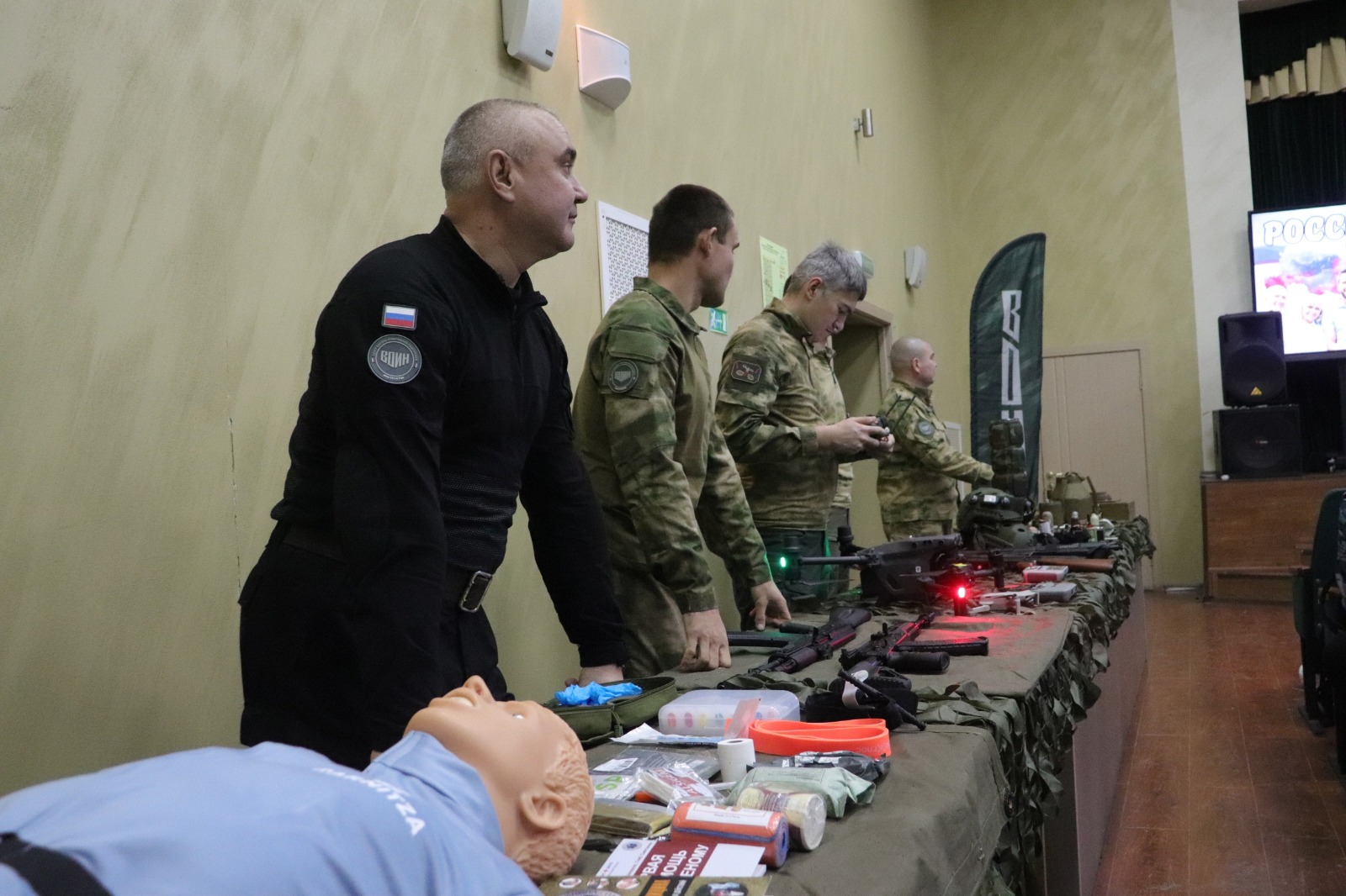 Сотрудники Центра «ВОИН» в рамках интерактивной выставки провели мастер-классы и представили оборудование, которое применяется в подготовке курсантов: квадрокоптеры различных видов, макеты огнестрельного оружия, страйкбольный комплект, экипировка курсантов для проведения сборов, средства связи, медицинская аптечка для оказания первой помощи, манекен для искусственной вентиляции легких и многое другое.