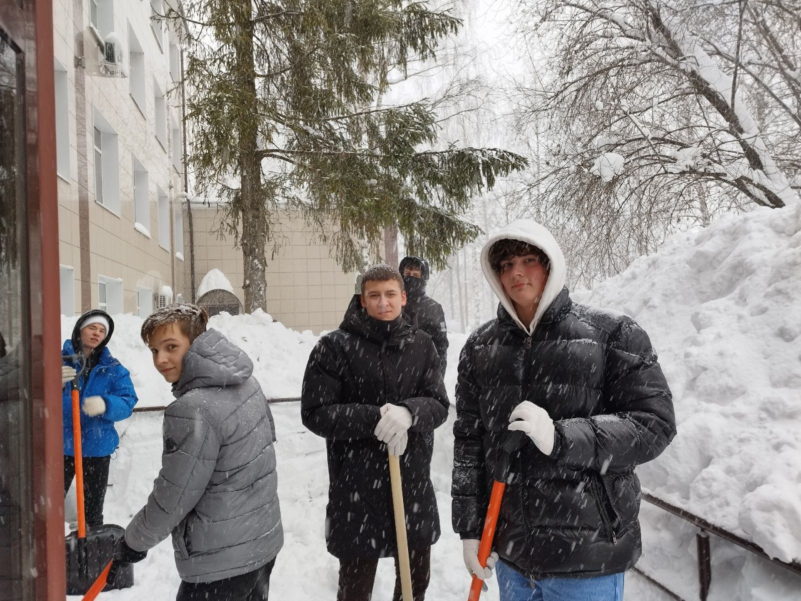 Ребята 812 и 813 групп дружно пришли на помощь в расчистке территории колледжа от снега.