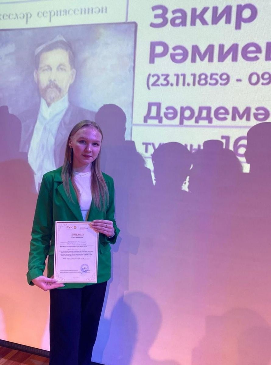 Көллиятебезнең 221нче төркем студенты Ваһапова Айгөл II нче дәрәҗәдәге диплом белән бүләкләнде. Айгөлне котлыйбыз! Алга таба да уңышлары белән сөендерсен дигән теләктә калабыз!