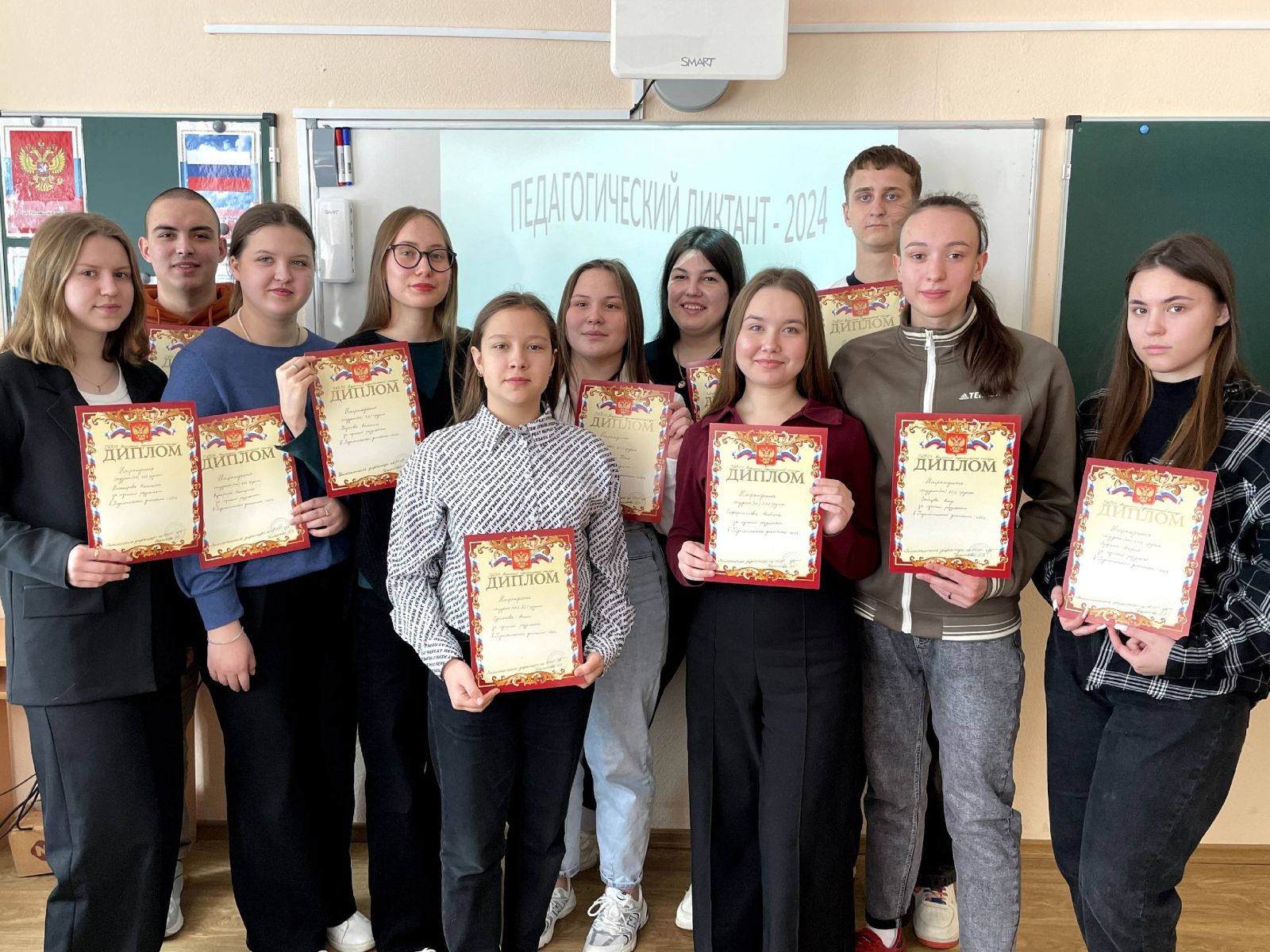 В завершении декады ПЦК школьной педагогики и психологии для студентов 2 курса специальностей "Преподавание в начальных классах" и "Физическая культура" был проведён ПЕДАГОГИЧЕСКИЙ ДИКТАНТ. В мероприятии приняли участие 140 человек. По итогам диктанта 14 студентов получили дипломы за лучшие результаты. Организаторы педагогического диктанта: Романчева Е. В., Желтухина М. А., Бутякова И. В.