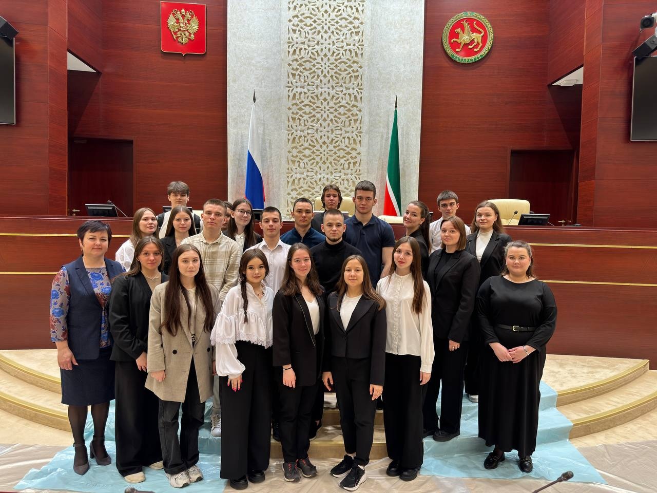 Лучшие студенты Казанского педагогического колледжа - члены студенческого совета колледжа и общежития, старосты групп, призеры и победители спортивных соревнований, заместитель директора по воспитательной работе - Венера Кабировна Тагирова, советник директора по воспитанию - Дарья Олеговна Недопекина посетили экскурсию в Государственный Совет Республики Татарстан.