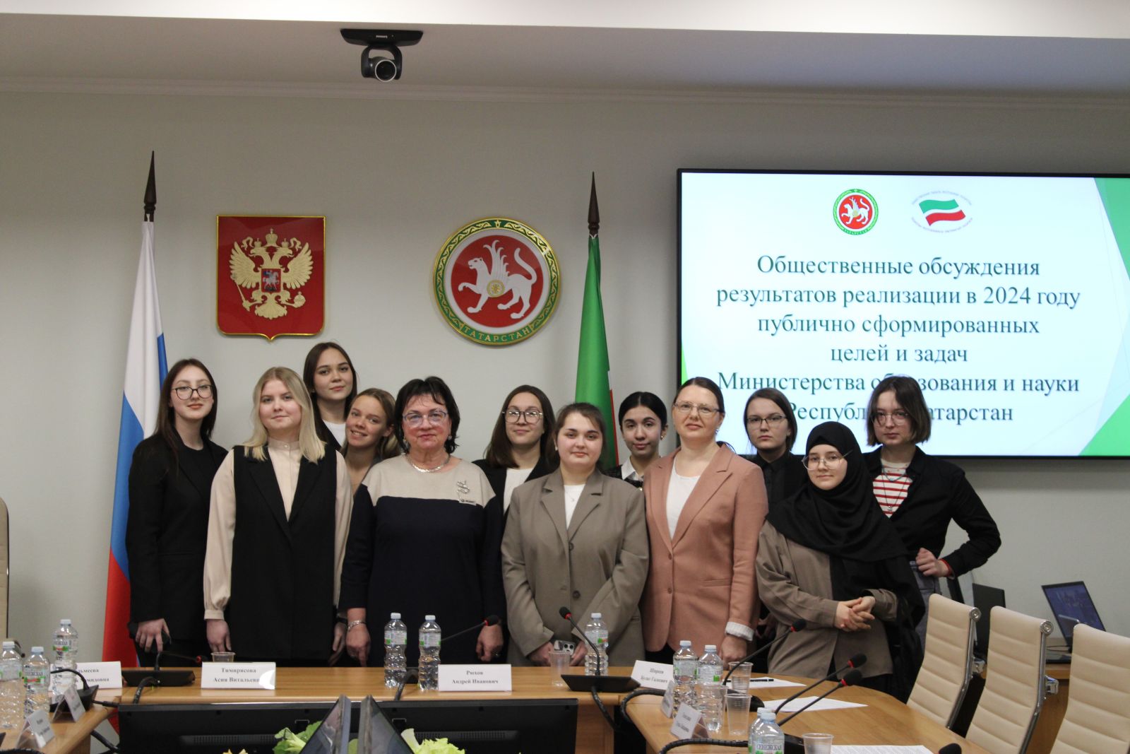21 февраля студенты 243 группы стали участниками общественного обсуждения результатов реализации публично сформированных целей и задач Министерства образования и науки РТ за 2024 год, которое прошло в Общественной палате Республики Татарстан. Одним из спикеров мероприятия выступила директор нашего колледжа Анфиса Григорьевна Залялова по вопросу об увеличении количества классов психолого-педагогической направленности в общеобразовательных организациях. В отчёте были озвучены и другие вопросы, касающиеся поддержки молодых учёных, выпускников педагогических специальностей, о создании условий для детей с ОВЗ и др.