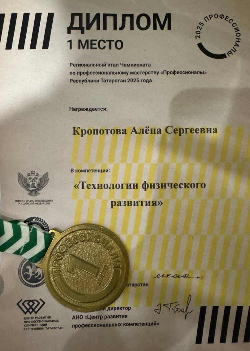 Наша студентка Кропотова Алёна, выполнив все задания, заняла 1 место! Эксперт-наставник Андриянова Ирина Константиновна.