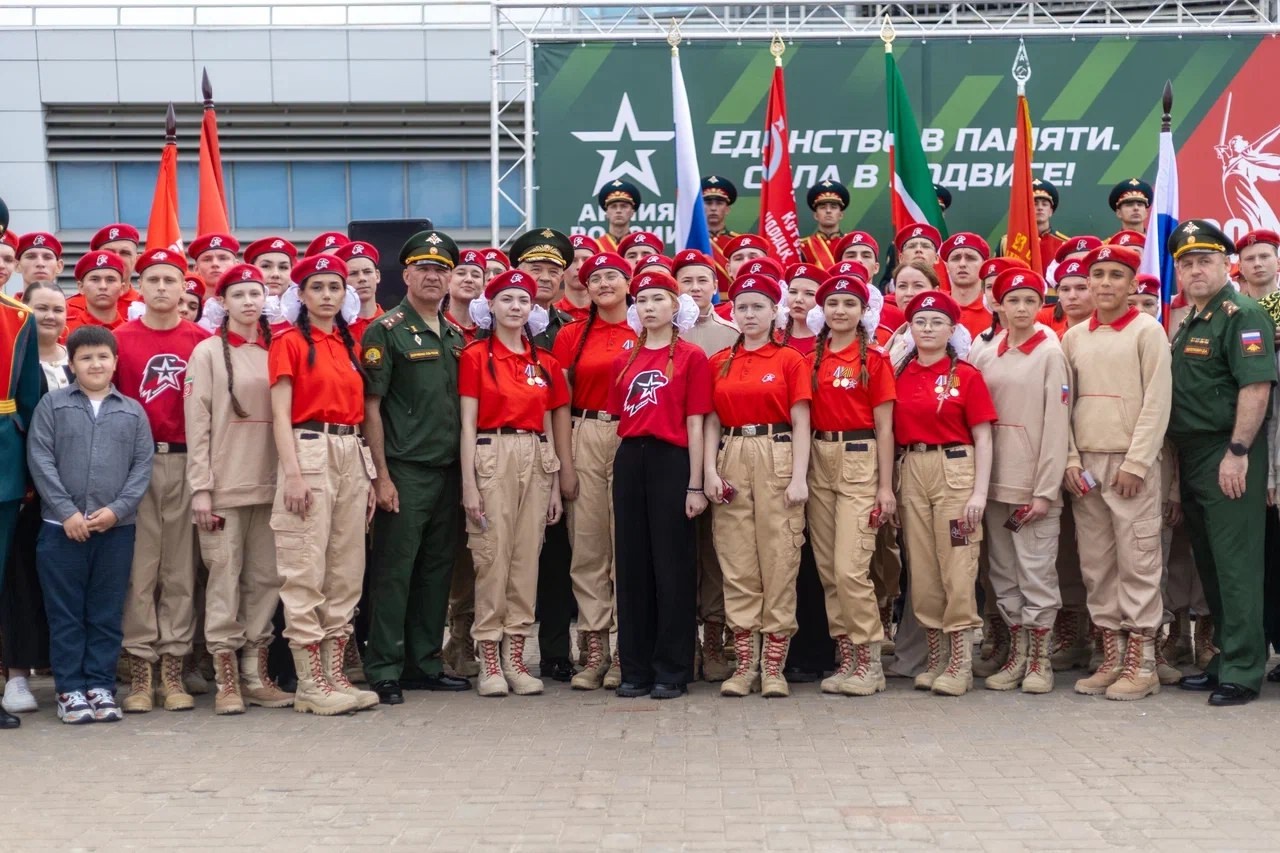 После торжественного митинга с участием членов Правительства РТ и представителей духовенства юнармейцы посетили экскурсионную программу по воинскому эшелону, дискуссионные площадки с участием героев СВО и представителей ветеранских организаций, провели телемост с участниками СВО, приняли участие во флешмобе «Моя Россия».