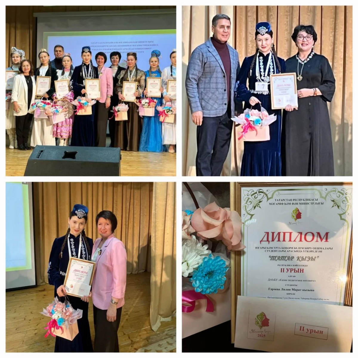 Опубликовано: 21.11.2025Бүген Арча педагогия көллиятендә «Татар кызы» конкурсының финалы үтте. 221 нче төркем студенты Гәрәева Лилия 2 урынга лаек булды һәм акчалата бүләк белән бүләкләнде. Лилиягә киләчәктә дә укуында һәм иҗади эшчәнлегендә уңышлар телибез!
