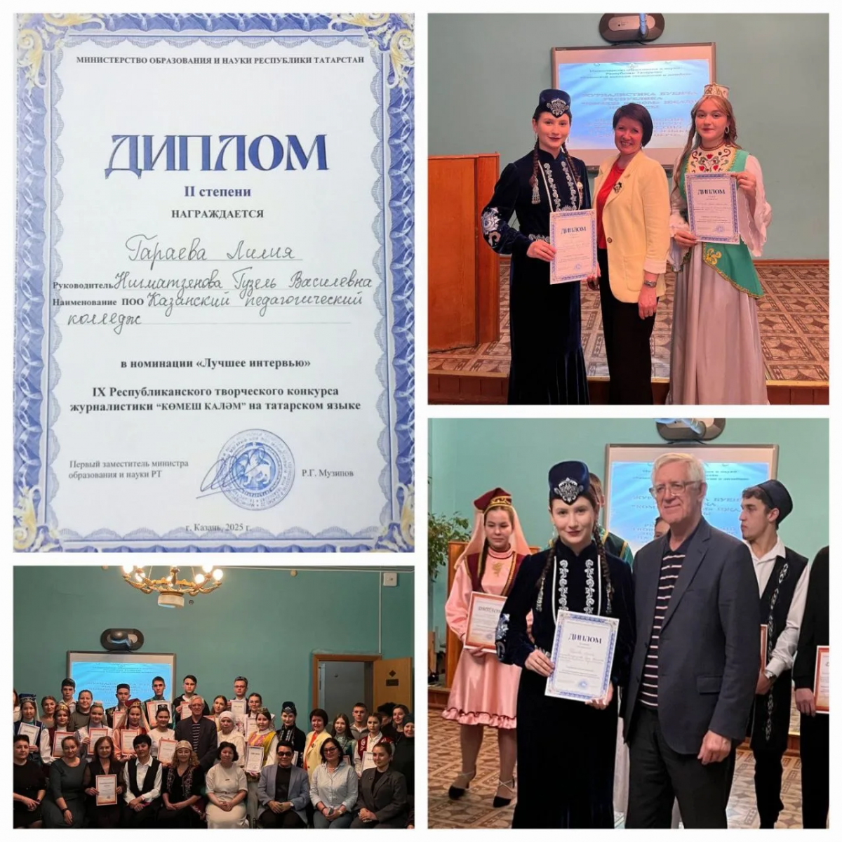 Опубликовано: 12.12.2025Бүген «Казан технология һәм дизайн» көллиятендә республикакүләм «Көмеш каләм» журналистика бәйгесе булып үтте.221 нче төркем студенты Гәрәева Лилия "Иң яхшы интервью"номинациясендә ll дәрәҗә диплом һәм акчалата бүләккә ия булды.Лилияне котлыйбыз,киләчәктә дә уңышлар телибез!