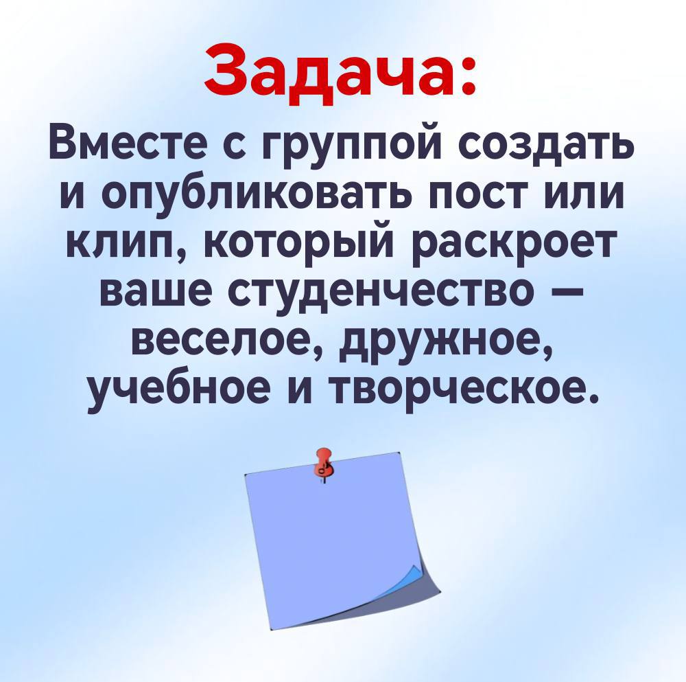 Покажи, что твоя стихия — не только сессии и лекции, но и драйв, энергия и безграничное творчество! Мы запускаем онлайн-флешмоб, где главные герои — ты и твоя студенческая жизнь