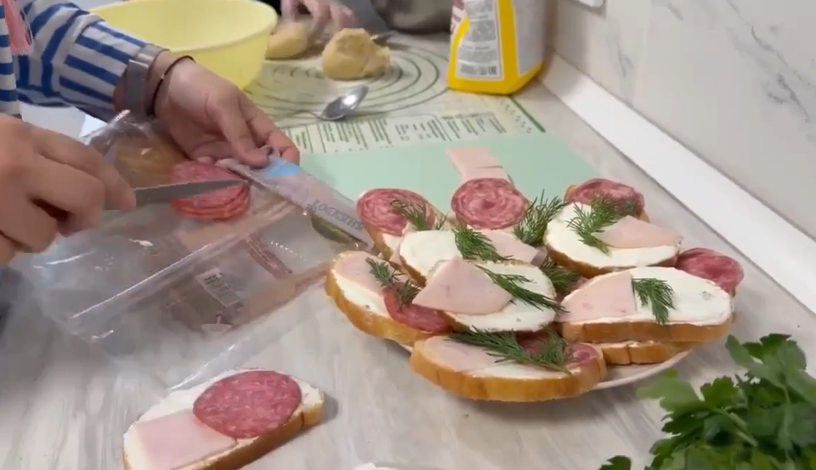 Совместно с 16 блоком приготовили «Кияү пилмәне» и вкусные бутерброды к чаю.