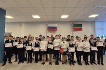 Государственный флаг РТ поднимали также 2 учащихся: учащаяся 1И класса Поляева Таисия - отличница учёбы, активистка, победитель и призёр многочисленных олимпиад и конкурсов и учащийся 1М класса – Казакова Анна - отличница учёбы, активистка, победитель и призёр предметных олимпиад.