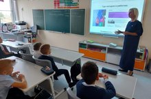 В рамках реализации программы воспитания и профориентации учащихся во 2-4-х классах состоялись классные часы на такие темы как «Профессии наших родителей», «Все работы хороши», «Мои обязанности в семье», «Кем быть?». Некоторые классные часы прошли в формате бесед с элементами игр и просмотром презентаций по профессиям, видеороликов, а некоторые – с проведением встречи с родителями, которые презентовали свои профессии. Так во 2Е классе мама Нурияздановой Софии поведала учащимся о своей профессии педагога-психолога. Дети с удовольствием слушали и активно задавали вопросы гостю.