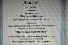 Юсупову Милену - диплом 1 и 3 степени, Даминову Саиду - диплом 3 степени,Еремееву Дарью - диплом 1 степени. Благодарим учителя литературы Смирнову Ольгу Юрьевну за активную работу по подготовке ребят.