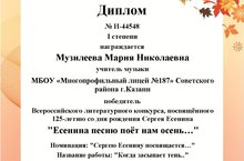 Во Всероссийском литературном конкурсе, посвященном 125-летию со дня рождения С.Есенина, у нашего лицея новые победы.