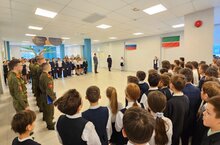Государственный флаг РТ поднимал учащийся 6Б класса – Хайруллин Карим - отличник учёбы, призёр муниципального этапа по ОДНКНР. В остальных классах церемония проводилась в учебных кабинетах совместно с классными руководителями и учителями-предметниками.