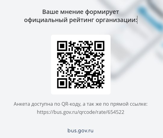 QR-код дает возможность открыть страницу организации на сайте bus.gov.ru либо в мобильном приложения «Наше мнение» (на выбор пользователя) и получить возможность: оценить качество условий осуществления образовательной деятельности организацией и оставить отзыв; ознакомиться с планом по устранению недостатков в организации по результатам проведенной независимой оценки; оставить отметку о согласии или несогласии с результатами независимой оценки.