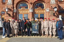 Участие кадетов в церемонии встречи ветерана ВОВ Комлева А.И. на вокзале 11.05.2025