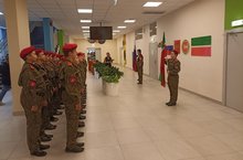 26 сентября по уже сложившейся в лицее традиции состоялась торжественная церемония поднятия государственных флагов Российской Федерации и Республики Татарстан и исполнение гимнов. В связи с дождливой погодой данная церемония прошла в здании лицея и флаги достойно внесли кадеты-учащиеся 6К класса.