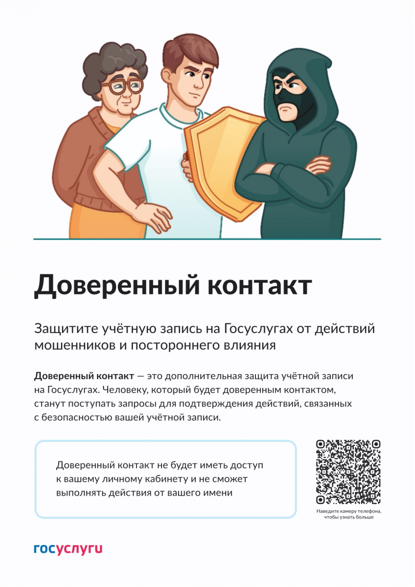 Доверенный контакт на Госуслугах — это функция безопасности, позволяющая назначить близкого человека (с подтвержденной записью) для защиты аккаунта от взлома и мошенников. Если злоумышленники попытаются восстановить пароль, СМС-код придет доверенному лицу, который должен подтвердить или отклонить операцию.