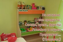 - побуждать детей выполнять игровые действия (продавец – продает, покупатель – покупает);