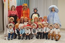 Захватывающий сценарий у старших дошколят не давал расслабиться детям ни на минутку. Хитрая Баба – Яга, которая как всегда пытается испортить ребятам праздник, украла все дары Осени. А ребятам пришлось исполнить все ее капризы, что они делали с большим интересом и желанием. И конечно – добро побеждает зло. Растроганная Баба – Яга вернула украденное и продолжила веселиться на празднике. Дети порадовали родителей вождением хороводов, русскими народными песнями и частушками. В подготовительной группе девочки исполнили «Танец с зонтиками». Сказочные персонажи вместе с Осенью проводили конкурсы, игры для детей, водили хороводы, загадывали загадки об осени. Волшебница - Осень пришла в гости к ребятам не с пустыми руками, а с большой корзиной, в которой принесла собранный осенний урожай.