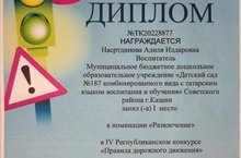 Муниципальное бюджетное дошкольное образовательное учреждение "Детский сад № 187 комбинированного вида с татарским языком воспитания и обучения" Советского района г.Казани