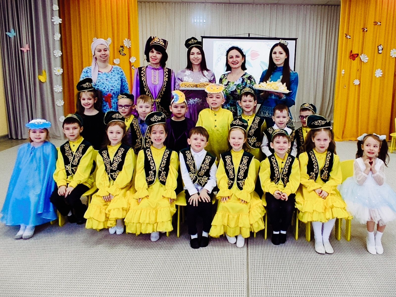 Праздник дорогой!Науруз –праздник татарского народа, стал традицией встречи весны в нашем детском саду. Науруз - один из самых красивых, долгожданных обрядовых праздников, в переводе с персидского языка означает новый день, новый год. Наши далекие прадеды встречали Наурyз, когда день и ночь выравнивались по времени и желали в этот день всем добра, здоровья и счастья. Национальному воспитанию детей в нашем детском саду мы оказываем особое внимание, проводим различные мероприятия, связанные с культурой народов, проживающих на территории нашей Республики. Дети вместе с героями пели песни, играли в татарские народные игры, танцевали. От начала до конца царило праздничное настроение, дети показали свои артистические таланты! Такие фольклорные праздники помогают сохранить дружбу между народами, воспитывают любовь и интерес к обрядовым праздникам, к родному языку, помогают сохранить традиционные духовно-нравственные ценности! Нәүрүз мөбарәк булсын!