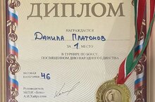 С 8 по 9 ноября проходил турнир по боксу,посвященный ДНЮ НАРОДНОГО ЕДИНСТВА в г. Казани среди спортивных школ. Наш ученик 9 «М» класса Платонов Даниил занял первое место среди ребят 2010г.-2011 г.