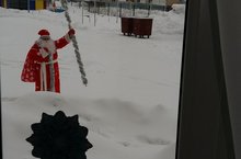 По сложившейся традиции в очередной раз к нам в детский сад пришел Дед Мороз. Он прошел по территории детского сада. помахав рукой и пригласив всех детей на праздник. Дети увидели Деда Мороза в окна и были очень рады.