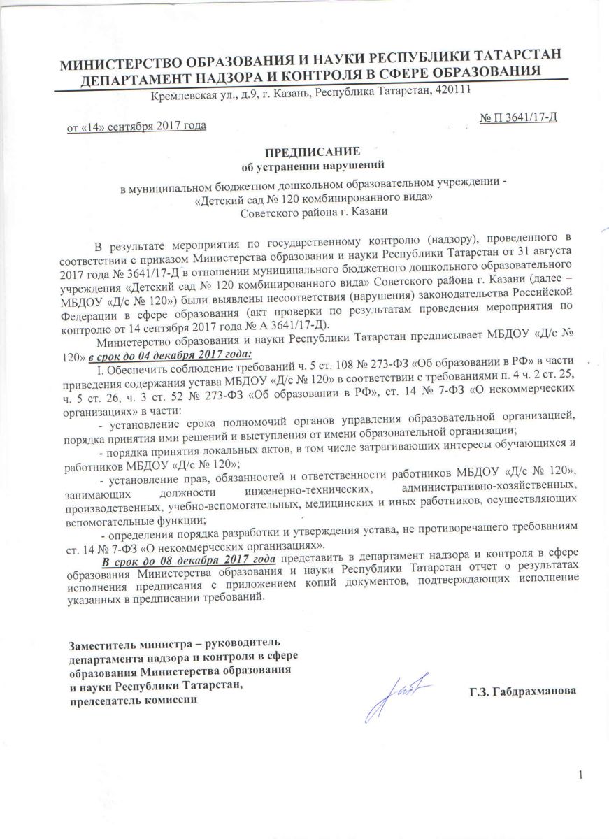 Муниципальное бюджетное дошкольное образовательное учреждение «Детский сад №120 комбинированного вида» Советского района города Казани