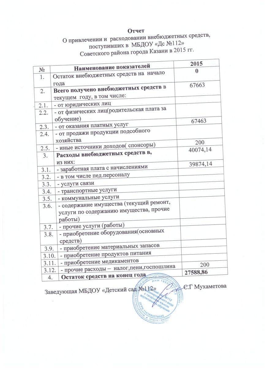 Отчет привлечении и расходовании внебюджетных средств в 2015 г.
