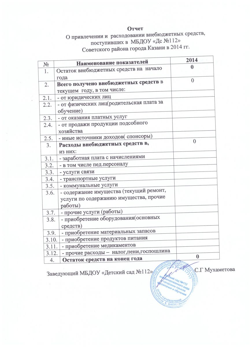 Отчет привлечении и расходовании внебюджетных средств в 2014 г.