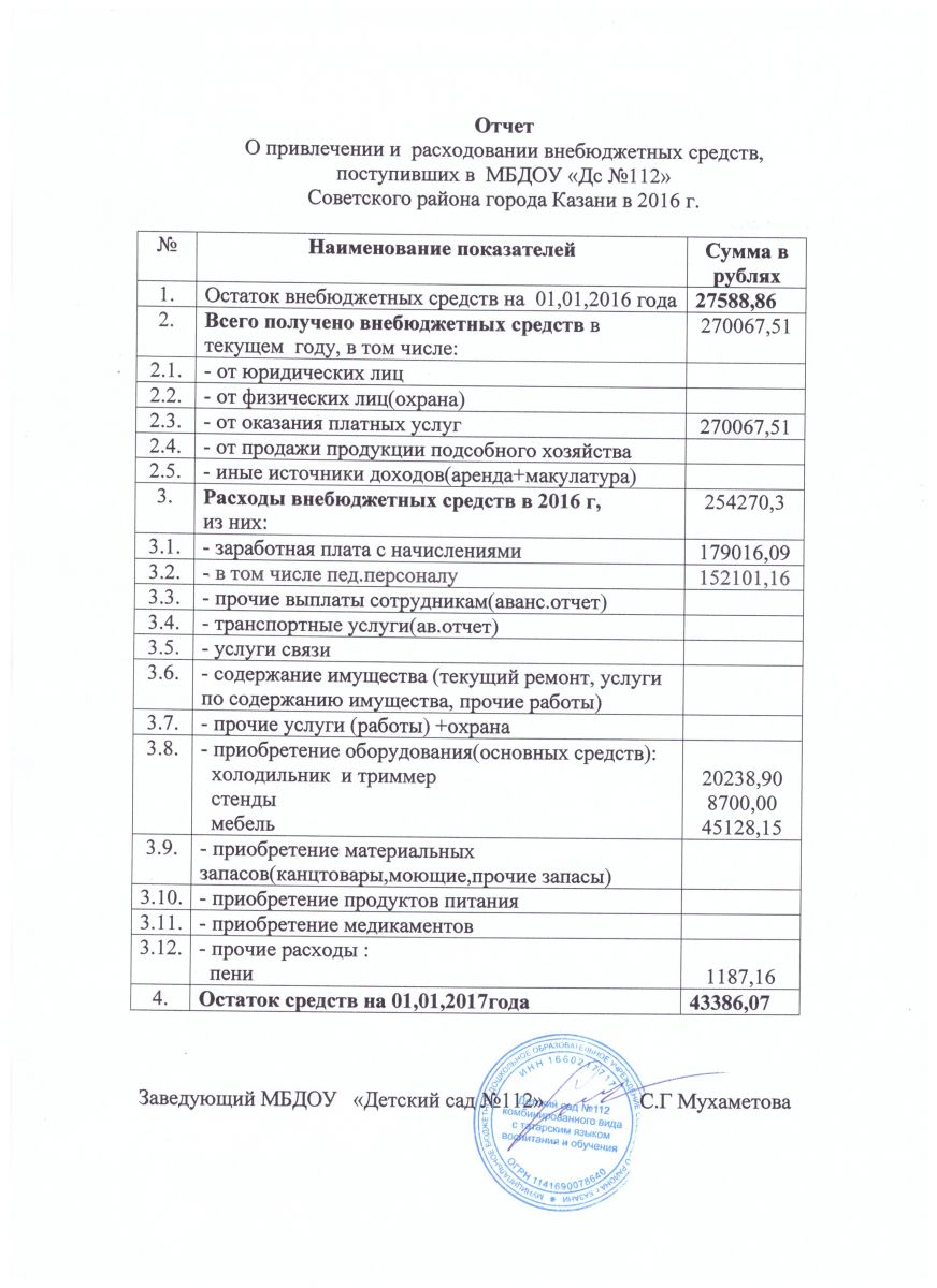 Отчет привлечении и расходовании внебюджетных средств в 2016г.
