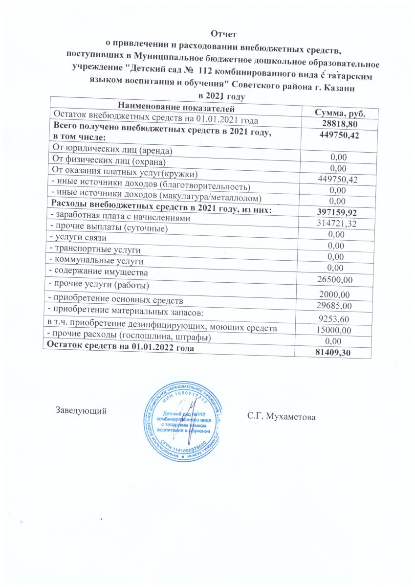 Отчет о привлечении и расходовании внебюджетных средств в 2021г.
