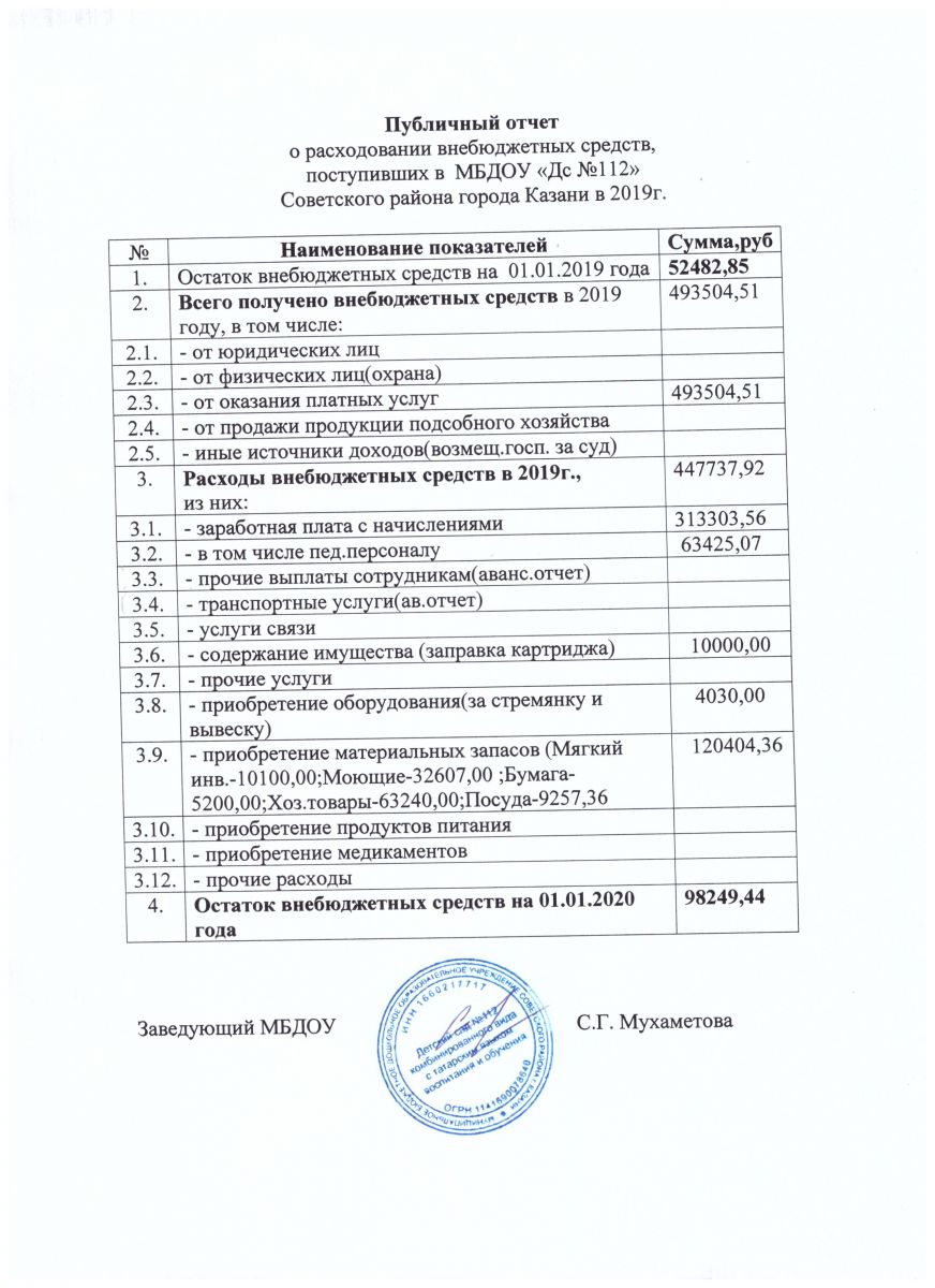 Отчет о привлечении и расходовании внебюджетных средств в 2019г.