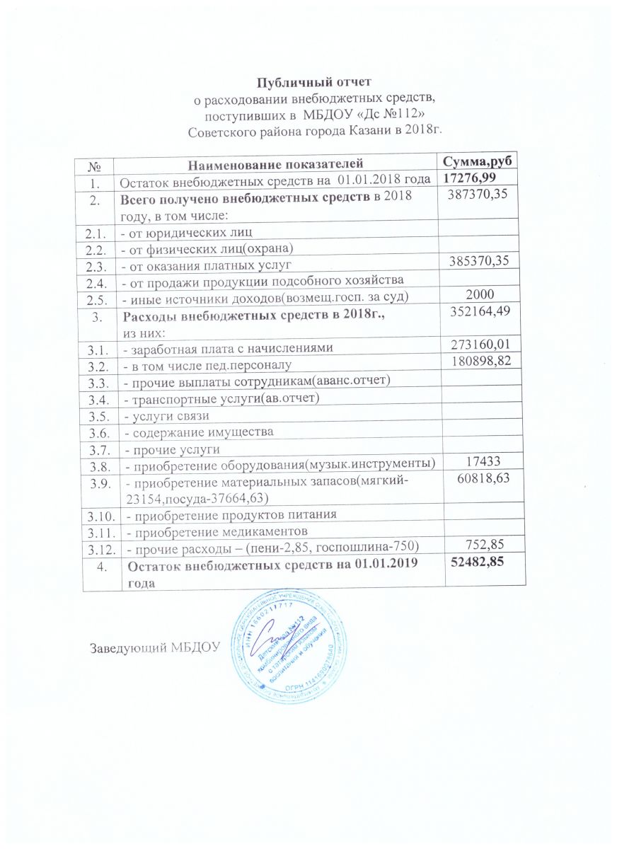 Отчет о привлечении и расходовании внебюджетных средств в 2018г