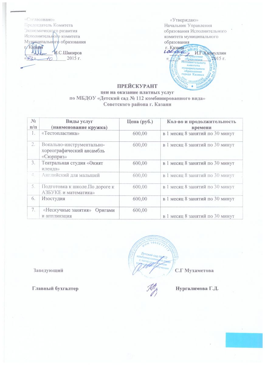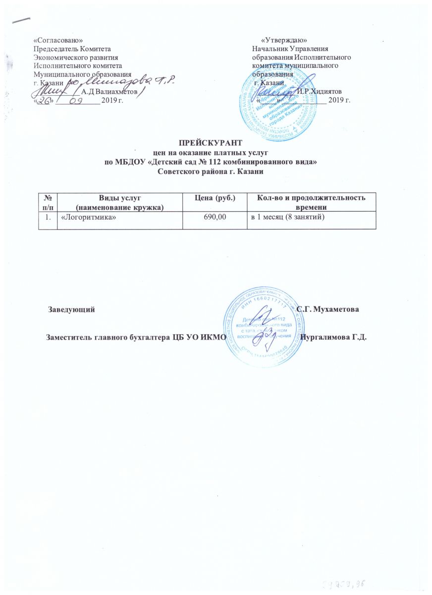 Прейскурант цен на оказание платных услуг. "Логоритмика".