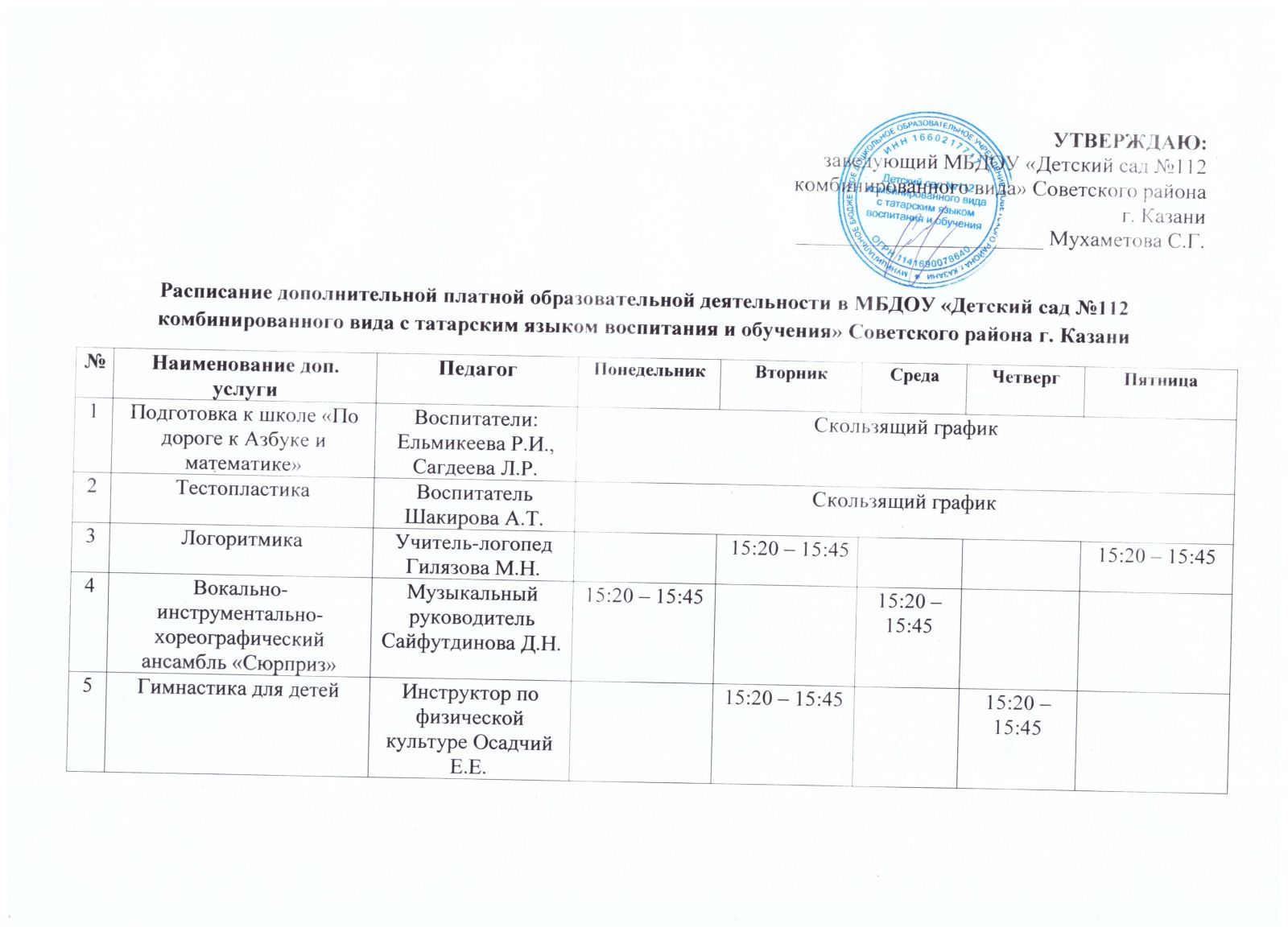 РАСПИСАНИЕ дополнительных платных образовательных услуг на 2020-2021 учебный год