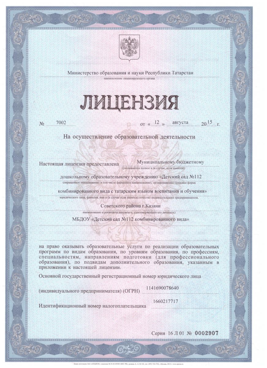 Лицензия на осуществление образовательной деятельности/Белем бирү эшчәнлеген тормышка ашыру өчен лицензия