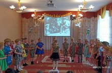 Уже стало доброй традицией, в преддверии великого праздника, проводить мероприятия посвященные этому событию .С трепетом и со слезами на глазах наши ребята слушают о том, как люди жили в военное время и послевоенные годы. Воспитанники и педагоги ДОУ спели песни и прочитали стихотворения. Еще одной традицией является исполнение военных песен.