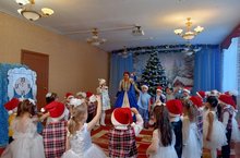 Красиво украшенный зал, нарядная елка, великолепные костюмы, подарки, Дед Мороз, Снегурочка и множество других сказочных персонажей ожидали детей и сотрудников детского сада. Радостной и незабываемой для детей была встреча со сверкающей огнями елочкой.